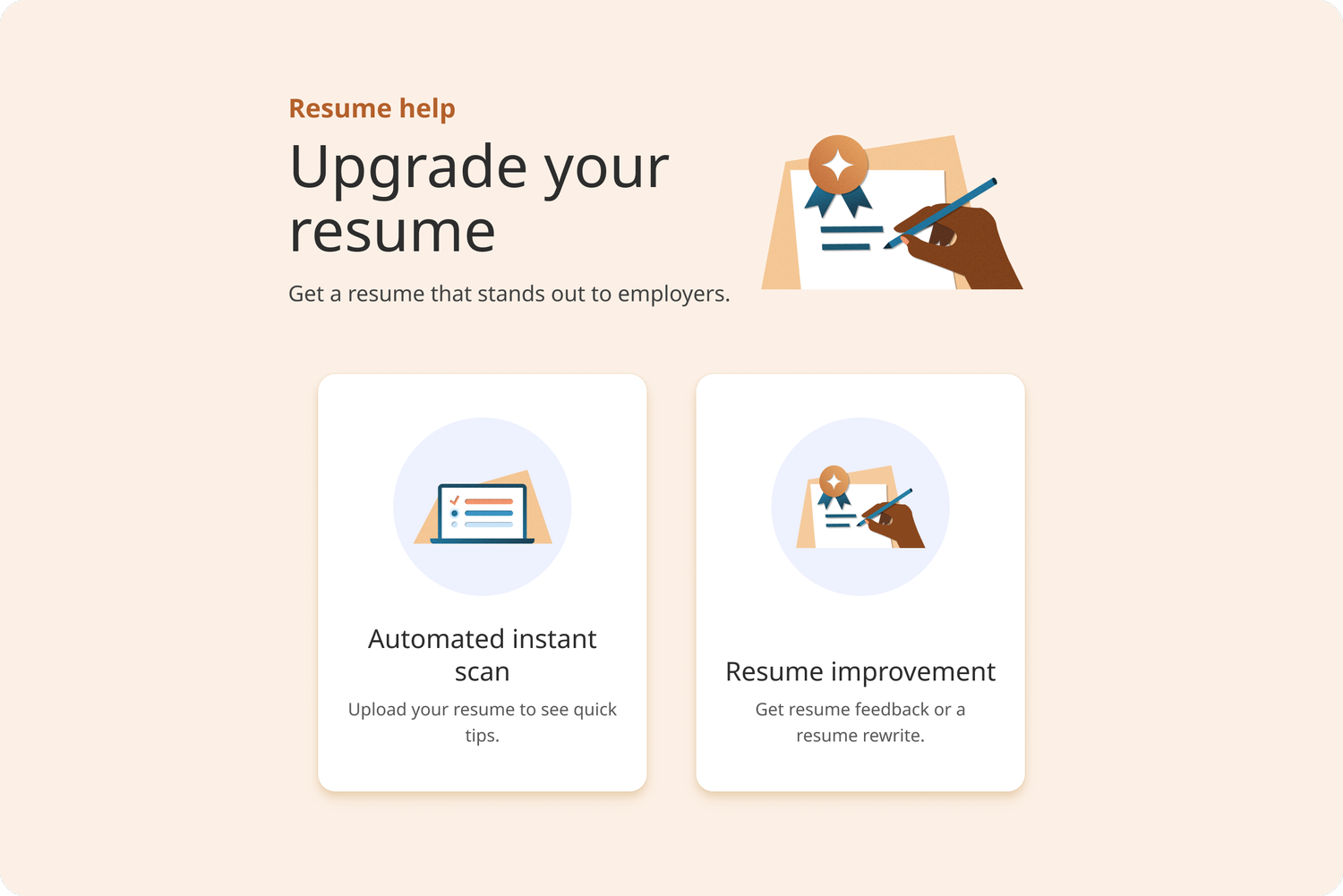 We believe that the optimal approach to providing our users with a comprehensive suite of career development tools and services lies in refining the user experience and augmenting the existing offerings of Indeed Career Services. By focusing on a more seamless and enriched interface, we aim to empower our users with the resources they need for well-rounded career progression.