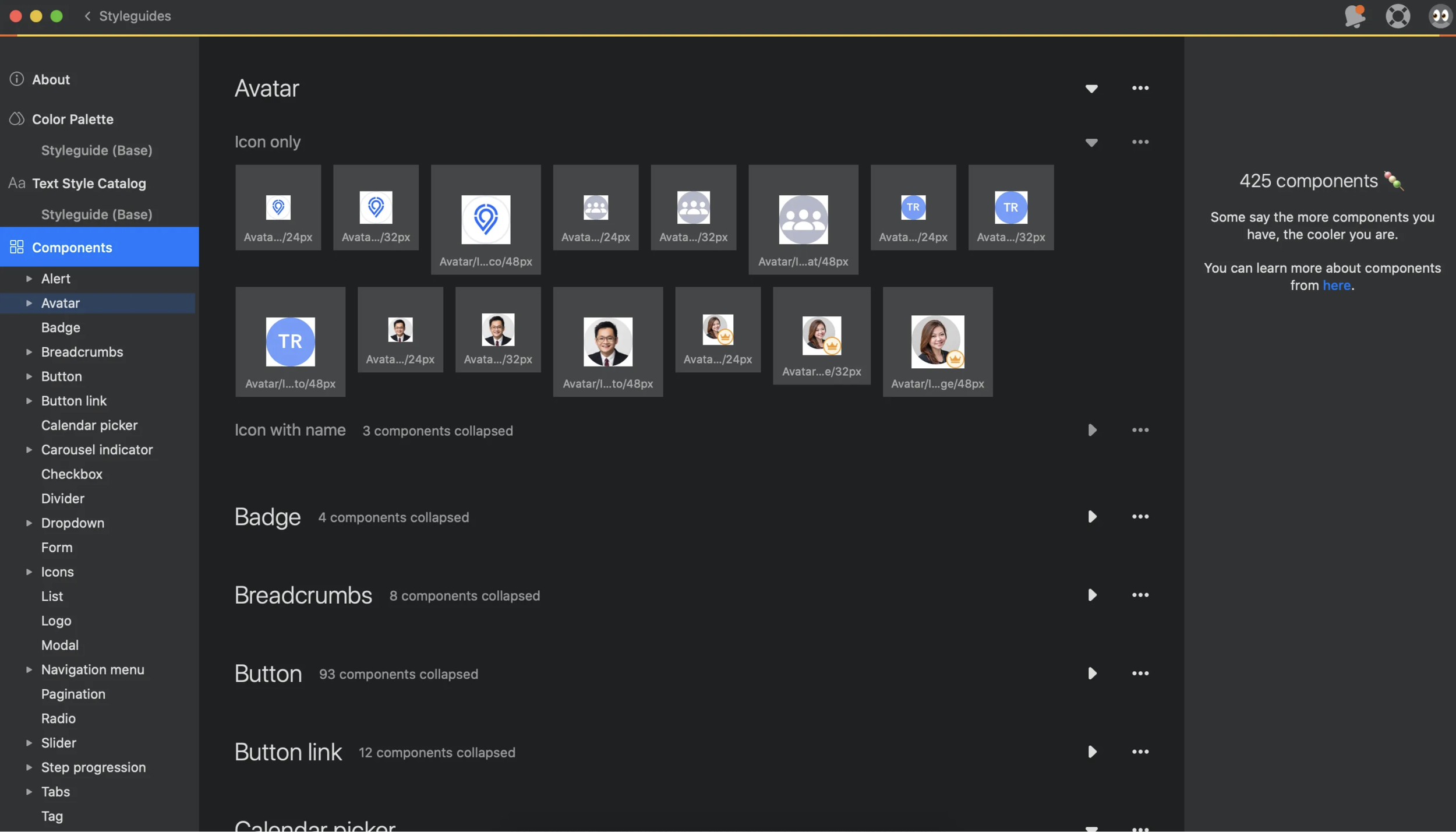By uploading all component symbols directly into 99 style guide, developers could then link their codebase and documentation sources, such as Storybook or GitHub, to these components. Consequently, when a developer inspects a design on Zeplin, they can view an overview of the component linked to the 99 style guide and easily reuse these components.