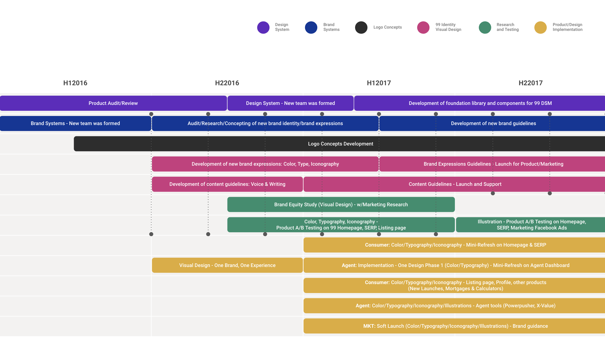 defines the core identity (company logo) and brand expressions (color, typography, graphic, iconography, photography, motion, voice/tone) of 99.co through the brand expressions within our product experience. With our senior leadership, we are aligning the company around a shared holistic vision around our brand story.
